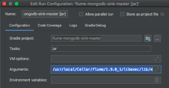 - Arguments 에 Flume Home 디렉토리 경로/lib/*을 넣는다 ( 이 내용은 빼도 되는지 아닌지 확인중)
