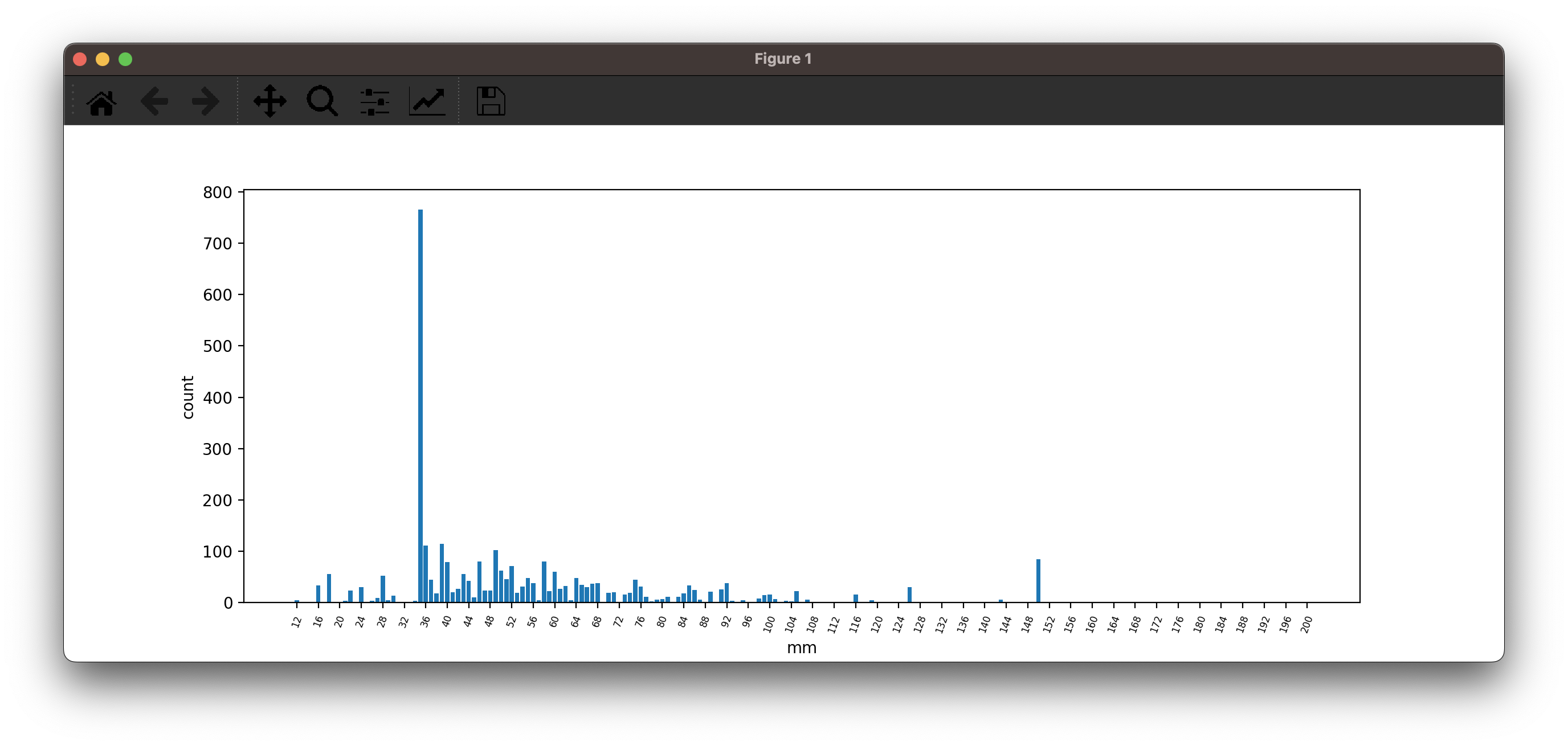 35mm ~ 100mm 안에 거의가 모여있고,
