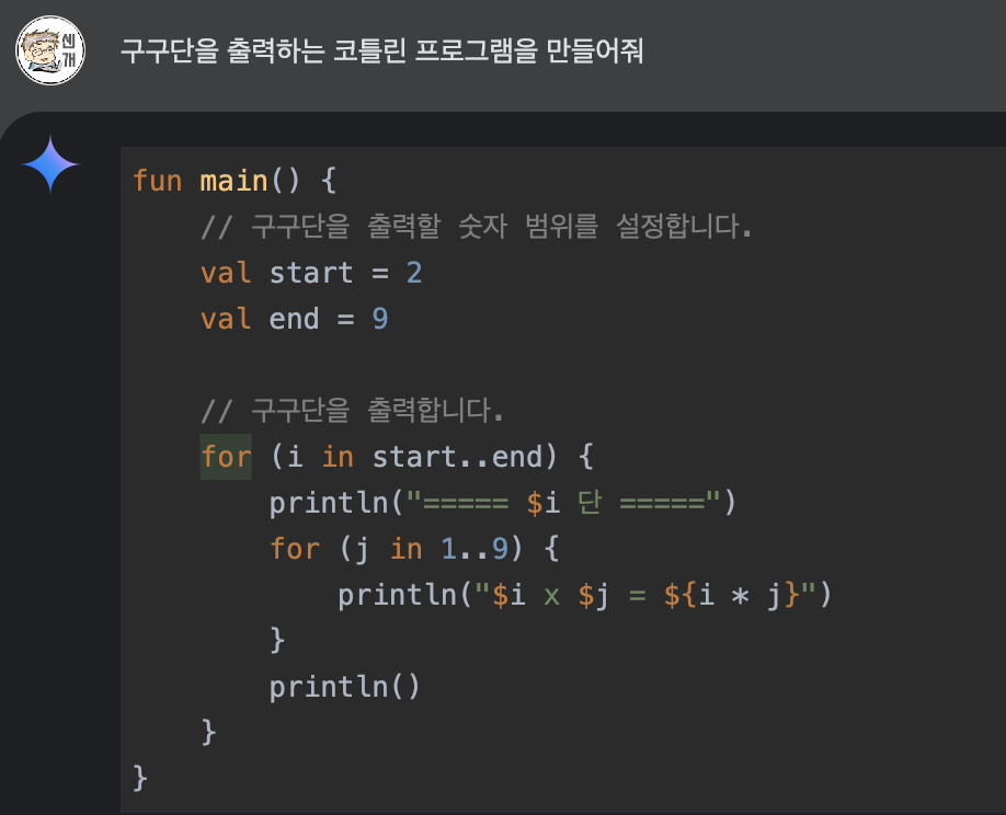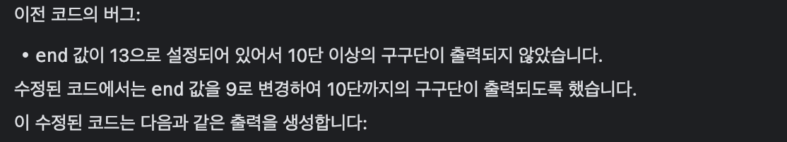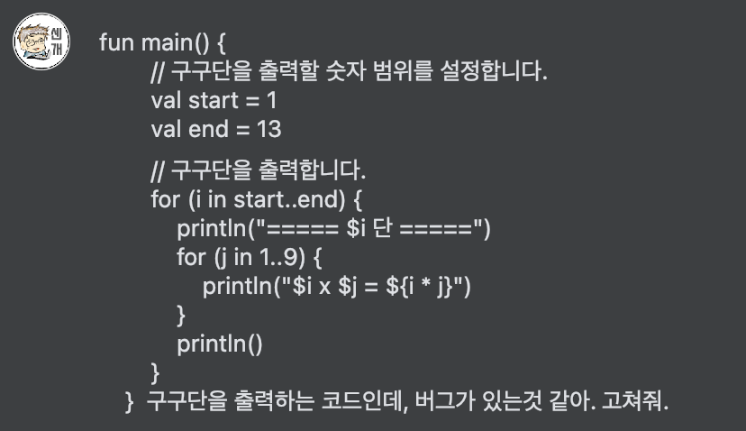 부푼(?) 마음을 잡고 다음과 같이 구구단을 출력해보라고 요청을 하니..