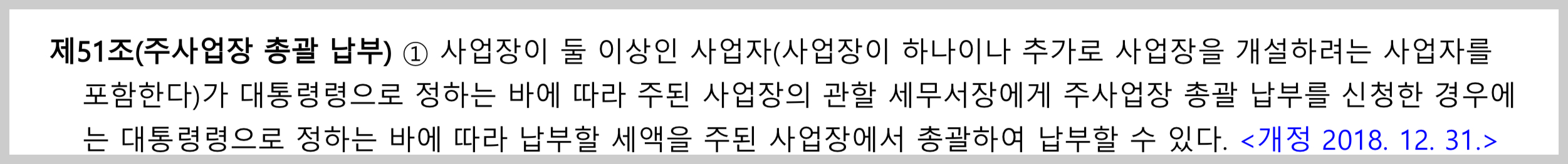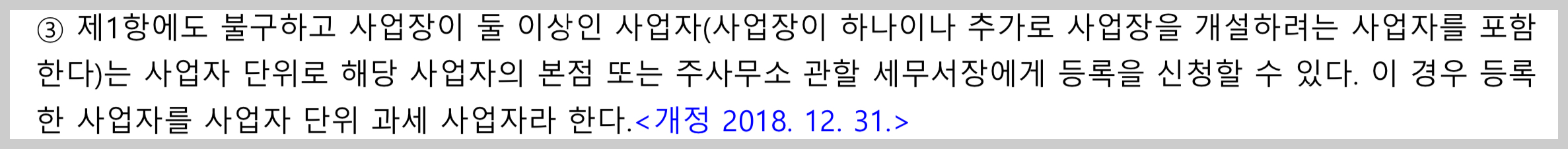 사업자 단위로 하나의 사업자 등록증이 나옵니다. 따라서 세금계산서발급, 부가가치세 신고와 납부를 모두 한번에 합니다.